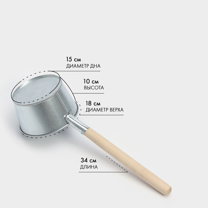 Оцинкованный ковш прекрасно впишется в оформление бани, где присутствует и дерево и сталь. Изготовлен из оцинкованной стали. Ему не страшен постоянный контакт с холодной и горячей водой.