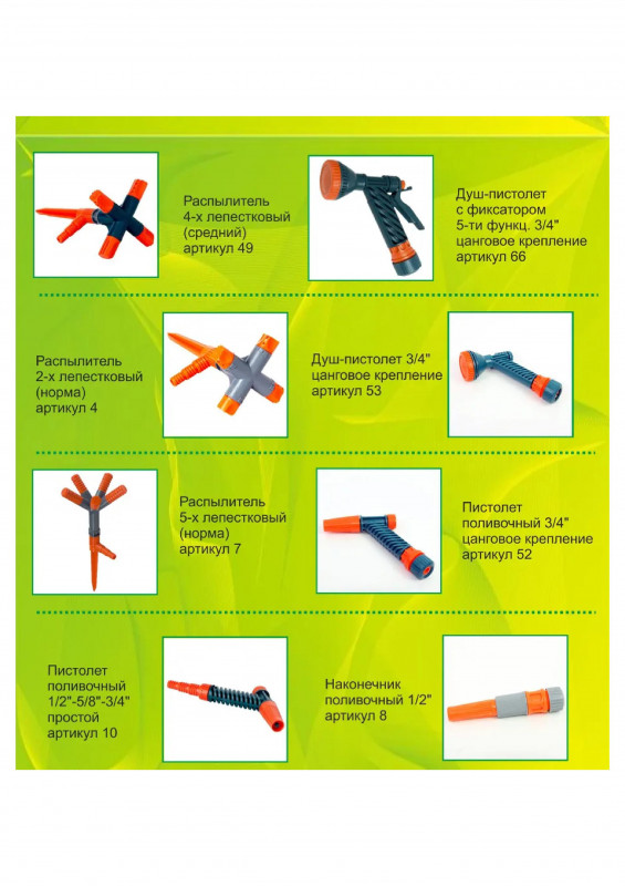 Подходит к шлангу диаметром от 1/2" до 3/4".