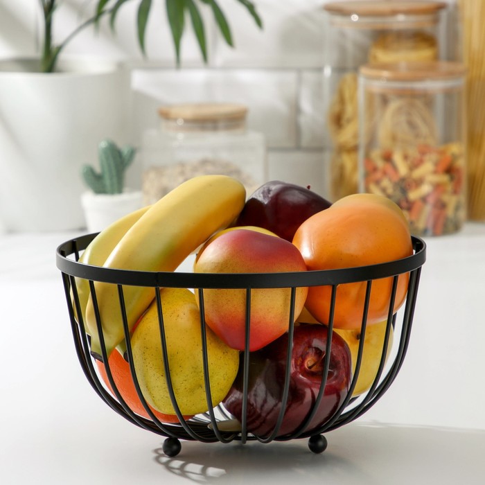 Стильная ваза для фруктов станет идеальным дополнением любого интерьера. Корзинка выполнена из окрашенного металла, что защищает её от коррозии. Благодаря оригинальному дизайну, фруктовница станет украшением вашей кухни или праздничного стола. Удобная конструкция позволит дольше сохранить фрукты свежими.