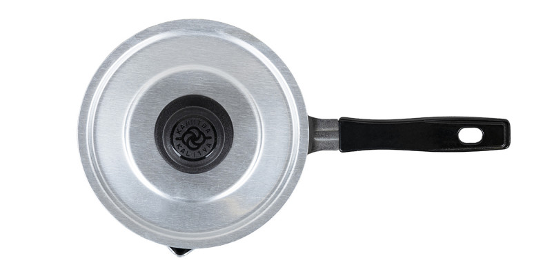 Кастрюля изготовлена из пищевого алюминия без покрытия, легко моется, выдерживает высокие температуры, подходит для газовых и электрических плит.