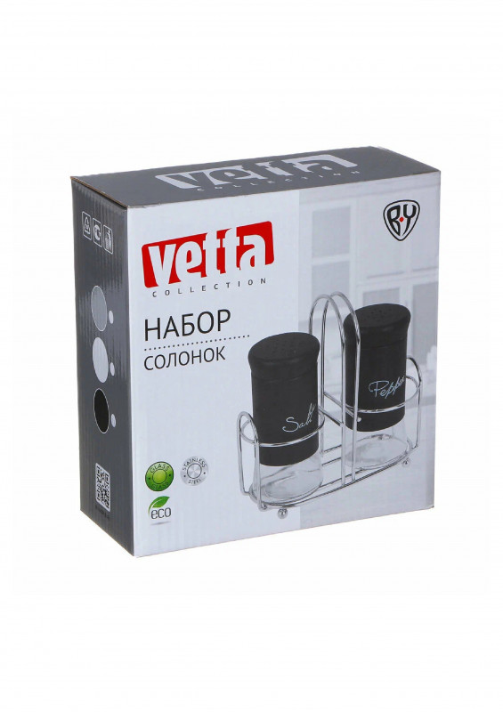 Соль и перец сопровождают каждую трапезу, поэтому уместно иметь на столе компактный набор для специй. Набор солонок с подставкой VETTA сочетает в себе функциональность и эстетичный дизайн. Солонка и перечница изготовлены из высококачественной нержавеющей стали и стекла, а крышки с отверстиями позволяют оптимально дозировать соль и перец по вкусу. Набор компактно расположится на обеденном столе и станет достойным дополнением к кухонному инвентарю.