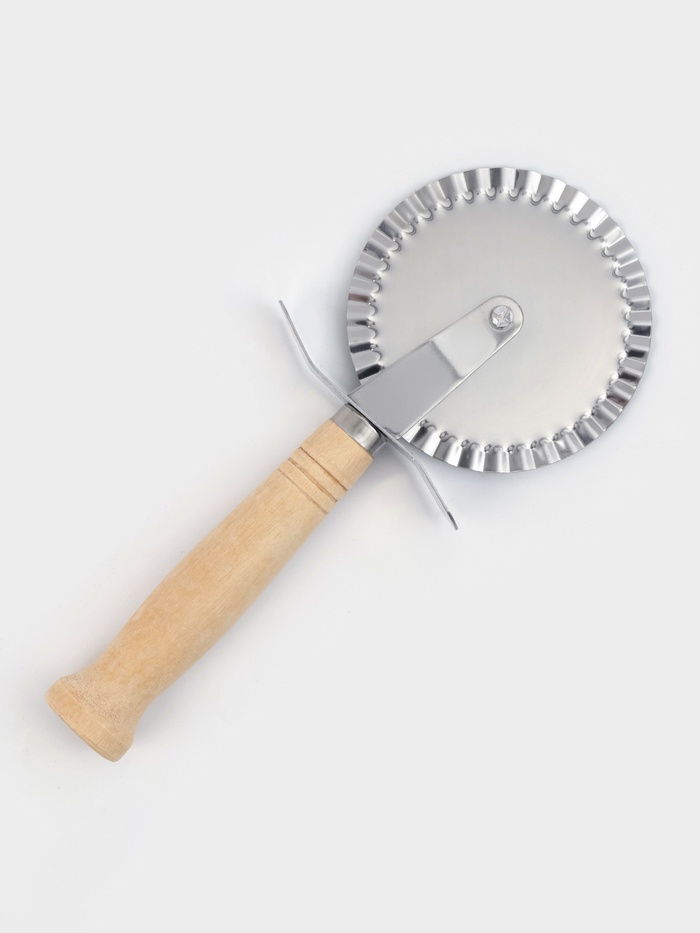 Нож для пиццы и теста 18,5см, ребристый, цвет бежевый "Классик"
