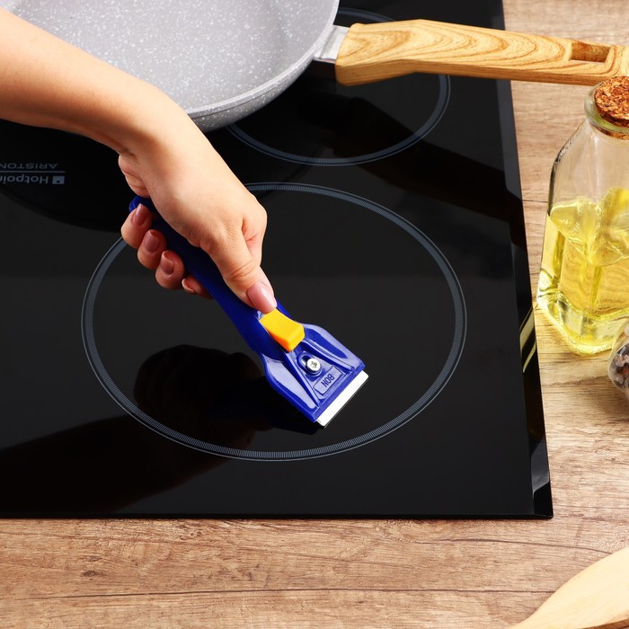 Скребок для стеклокерамики – настоящая находка для каждой хозяйки! За стеклокерамической плитой нужен особый уход, ведь жёсткими губками чистить их нельзя, чтобы не повредить поверхность. Как же тогда быть? Скребок бережно и эффективно справится с въевшейся грязью и пригоревшими остатками пищи, не повредив кухонную технику.