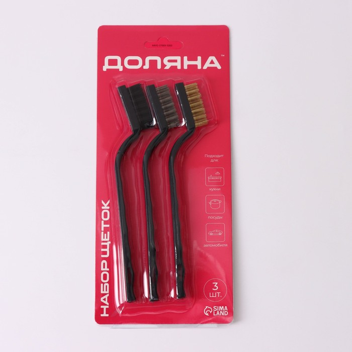 Набор щеток 3шт:латунная,стальная,нейлоновая