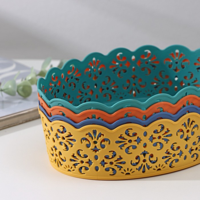 Корзинка пластиковая для хранения 21,5х15,5х6см, цвет микс "Кружевной узор"