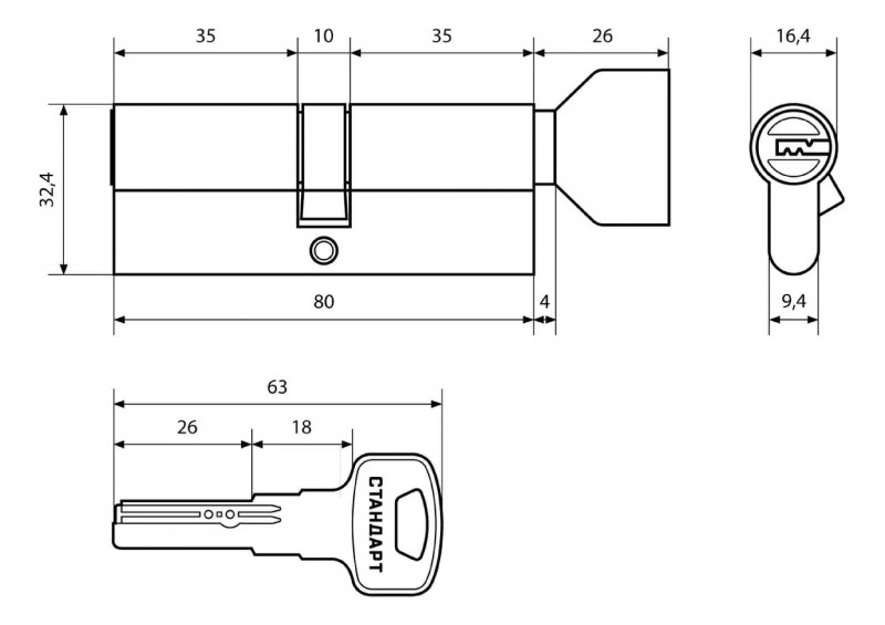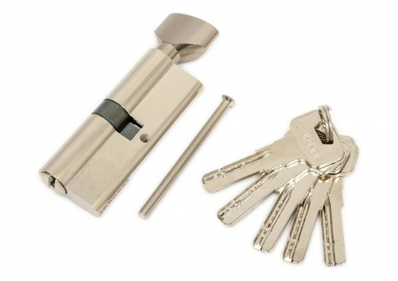 Механизм цилиндровый для врезных замков. Европрофиль. Перфоключ. Материал цилиндра - сталь, цинковый сплав. Ключ-ключ. Выступающий на 30 градусов из плоскости механизма кулачок защищает цилиндр от выбивания из двери.