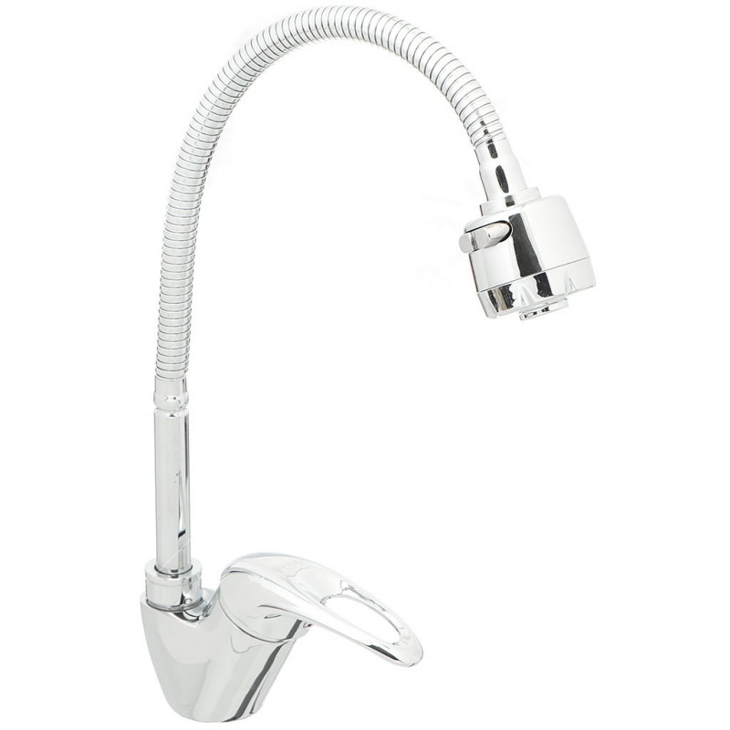 Frap смеситель для кухни, с гибким гусаком и лейкой, однорычажный, катридж 40 мм, корпус латунный, покрытие хром, крепление на гайке, гибкая подводка 35 см.