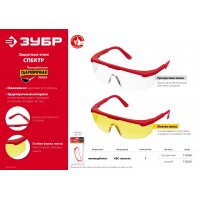 Очки защитные прозрачные отрытого типа с доп. бок. защ. ЗУБР Спектр 5